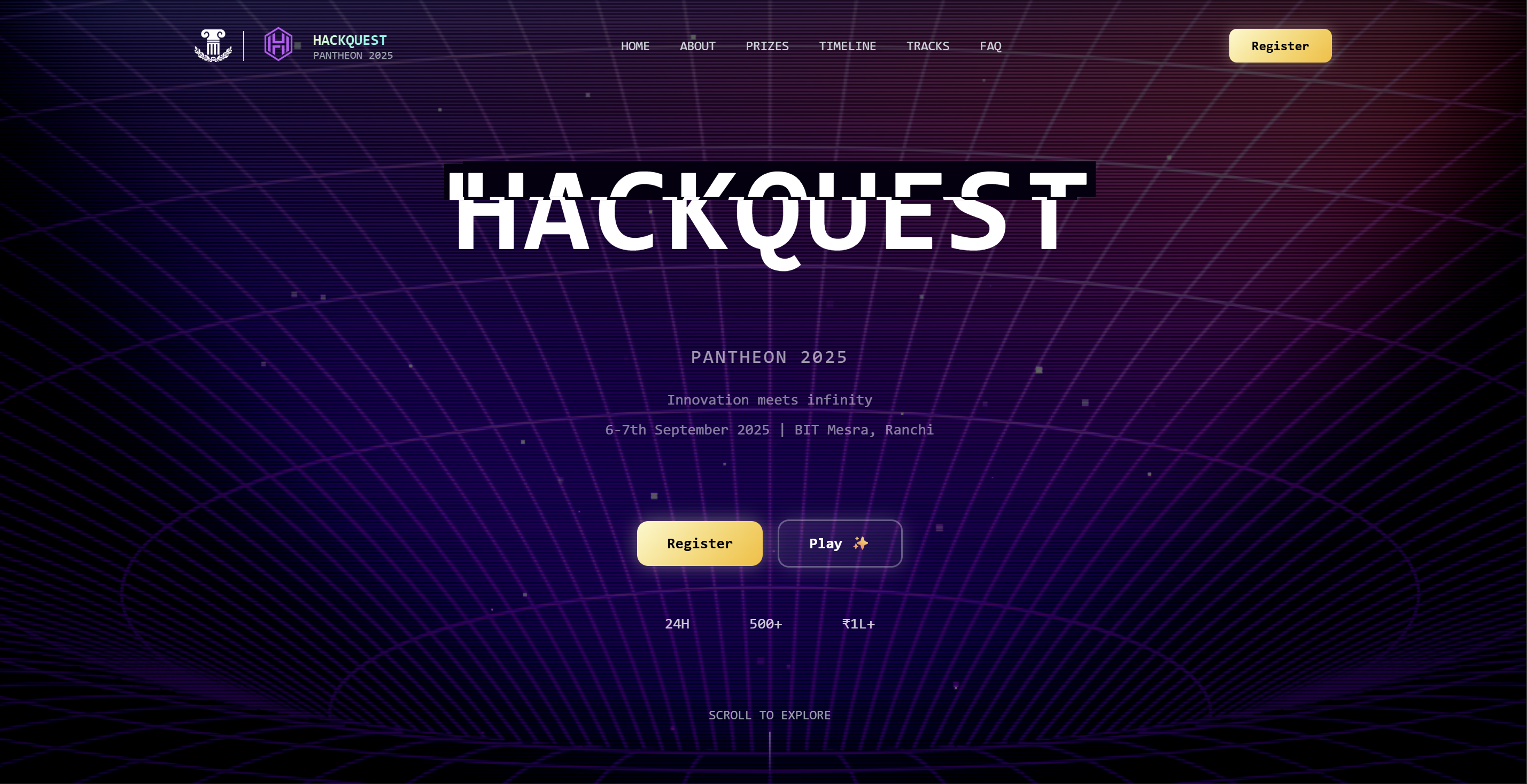 The official technical festival website for BIT Mesra, featuring a GTA VI-inspired aesthetic, managing registrations for over 10000+ students.